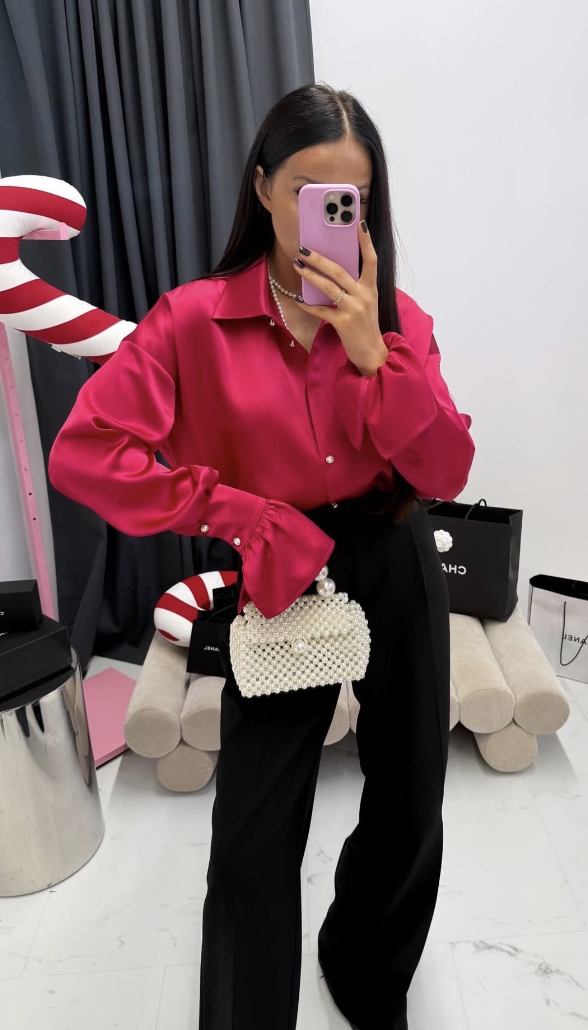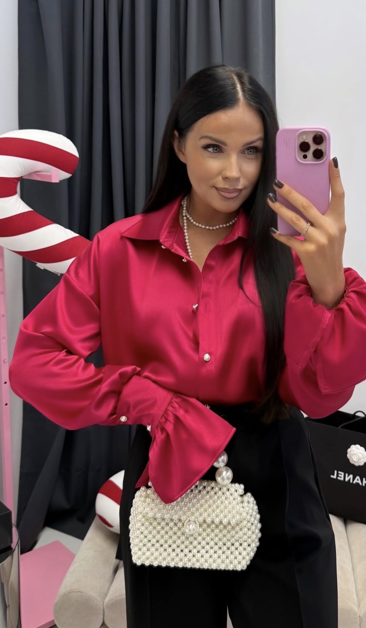 Elegancka koszula o lekko oversize’owym kroju, wykonana z satynowego materiału o delikatnym połysku. Model wyróżnia się szerokimi mankietami i klasycznym kołnierzem, dzięki czemu sprawdzi się zarówno w stylizacjach dziennych, jak i wieczorowych.